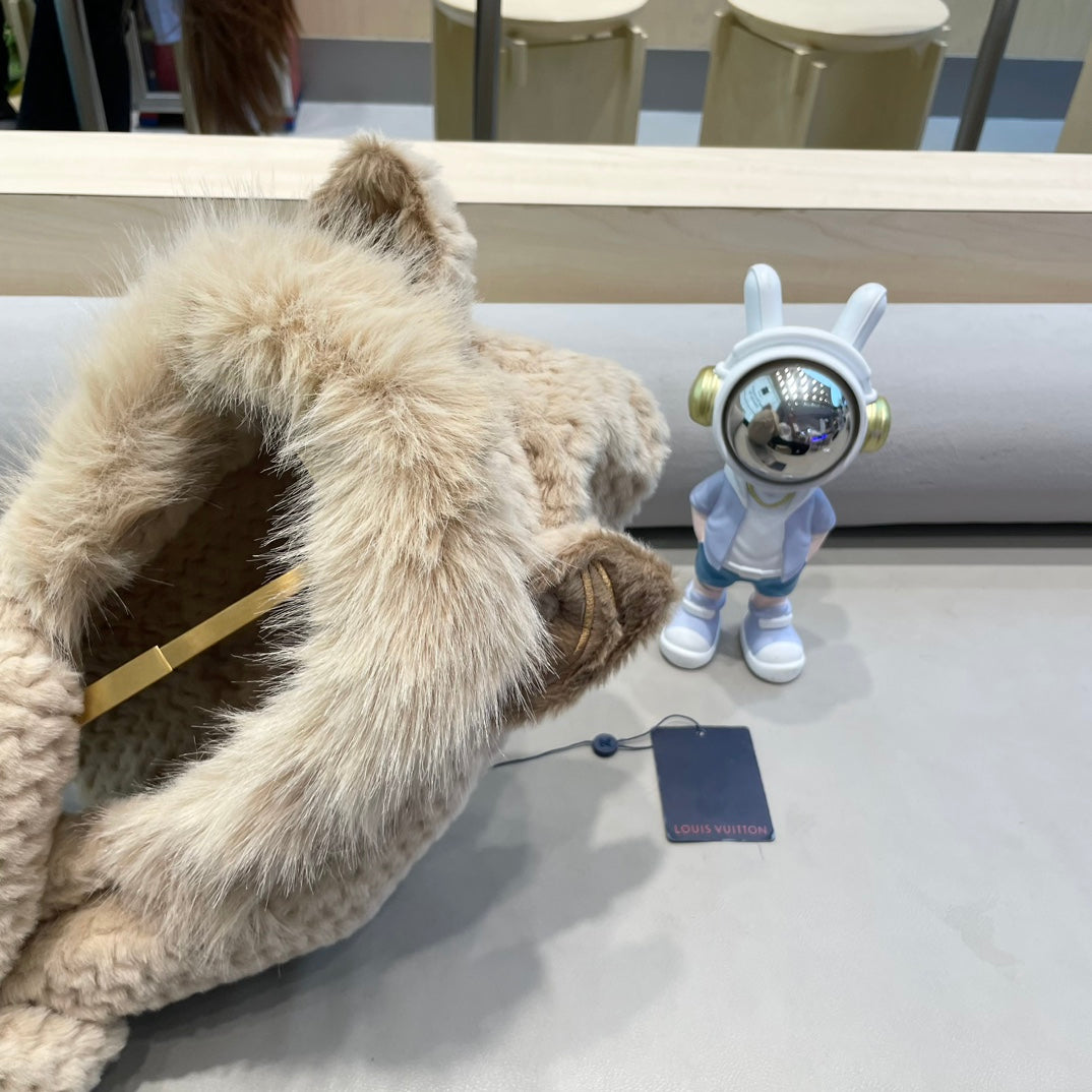 BEANIE HAT IN COSMIC LATTE BEIGEWOOL AND LAMB FUR 435073