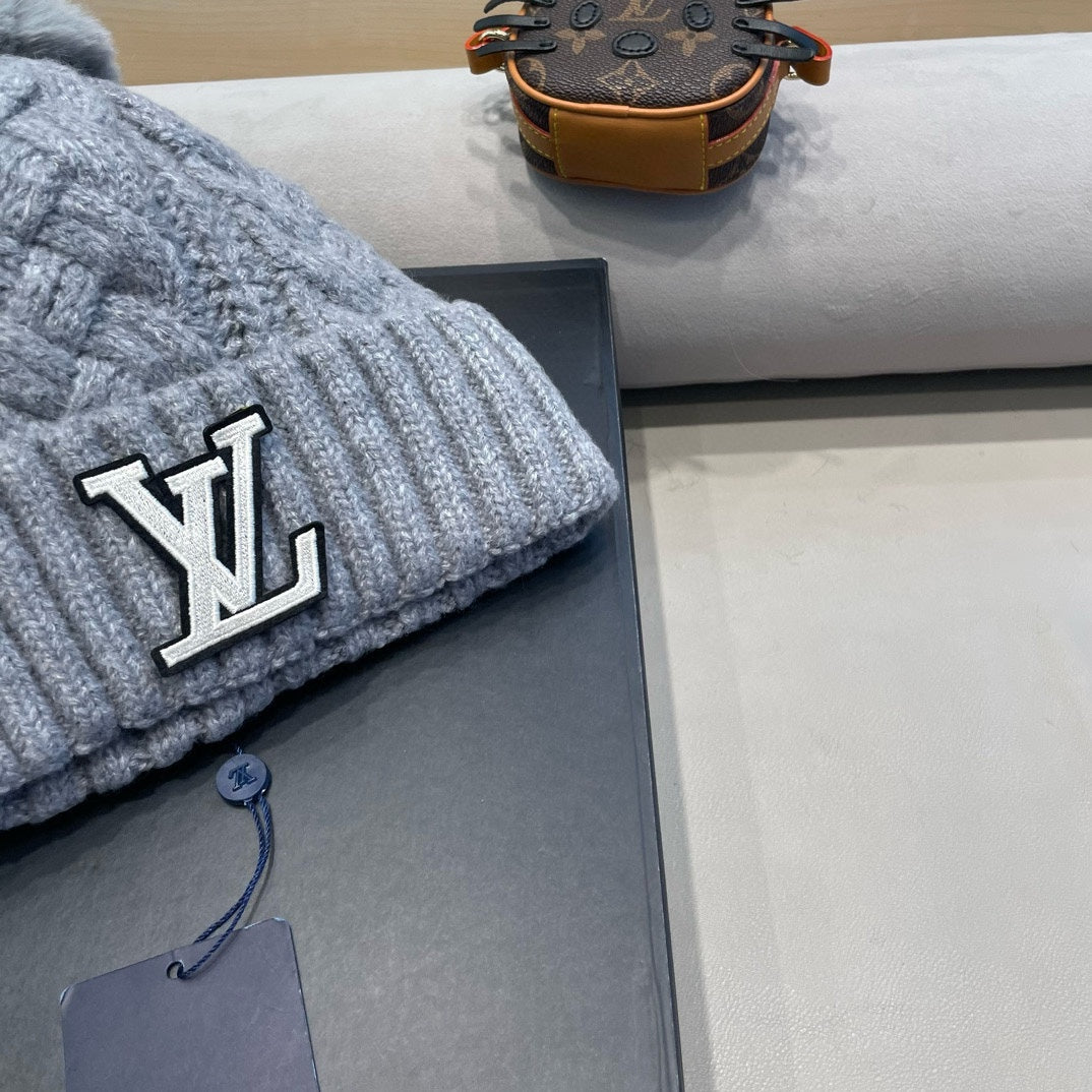 KNITTED BEANIE HAT IN GRAY WOOL AND LAMB FUR 430046