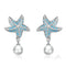 Ocean Blue Zircon Starfish Stud Earrings Shell Pearl Drop Earrings
